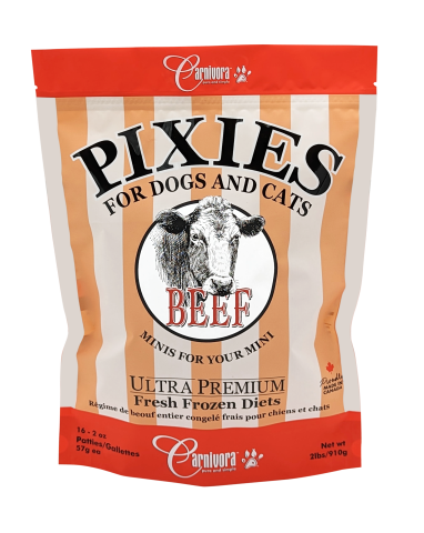 Beef patties contain the whole animal except the heads, hides, bladder and large intestine (manure), hooves, horns (if any). We do not use non-edible bones as these would not be consumed in nature due to their density. Organs make up approximately 8 to 10 % of the patties - this includes lungs, liver, heart, kidneys, and the tongue. The omasum from beef is saved for our green tripe patties. On average over all our proteins, patties are composed of 66% muscle meat, 7% bone, 10% organs, 7% blood, and 10% fat. We DO NOT add anything to our foods. You may supplement as needed. Please visit our healthcare and supplement pages.