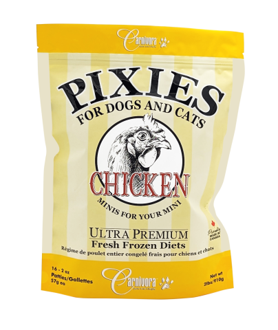 Chicken is one of the most popular raw diets, often chosen for its lower cost. Compared to other whole animal diets, it is not as nutrient-rich. Chickens store most of their fat in a layer under the skin and in the body cavity, and because the skin is usually included, chicken tends to be higher in fat than many other species. This fat contains higher amounts of omega-6 fatty acids. Diets higher in chicken fat may be unsuitable for less active dogs or for those with inflammatory conditions or skin issues.